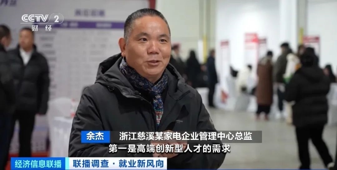 浙江慈溪某家電企業(yè)管理中心總監(jiān) 余杰:第一是高端創(chuàng)新型人才的需求,第二是一線產(chǎn)業(yè)工人的需求。接下來幾年,我們企業(yè)對智能化、數(shù)字化的人才有大量需求,市場很欠缺。
