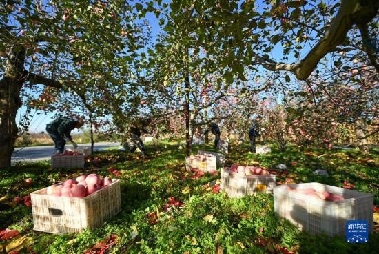 3月23日,小朋友在河北省石家莊市鹿泉區(qū)山南張莊村的杏林中玩耍。新華社發(fā)(閆志國(guó)攝)