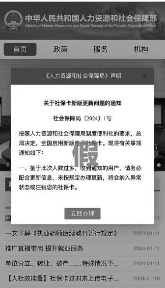 套路二 仿冒人力資源和社會保障部官網(wǎng),并在仿冒網(wǎng)站上設(shè)置釣魚網(wǎng)頁,誘騙當(dāng)事人填寫姓名、身份證號等信息,再利用竊取的個人信息實施詐騙。持卡人在收到類似詐騙短信時,可通過撥打12333服務(wù)熱線或前往人社服務(wù)大廳核實等方式,確認(rèn)社??顟B(tài)是否正常。