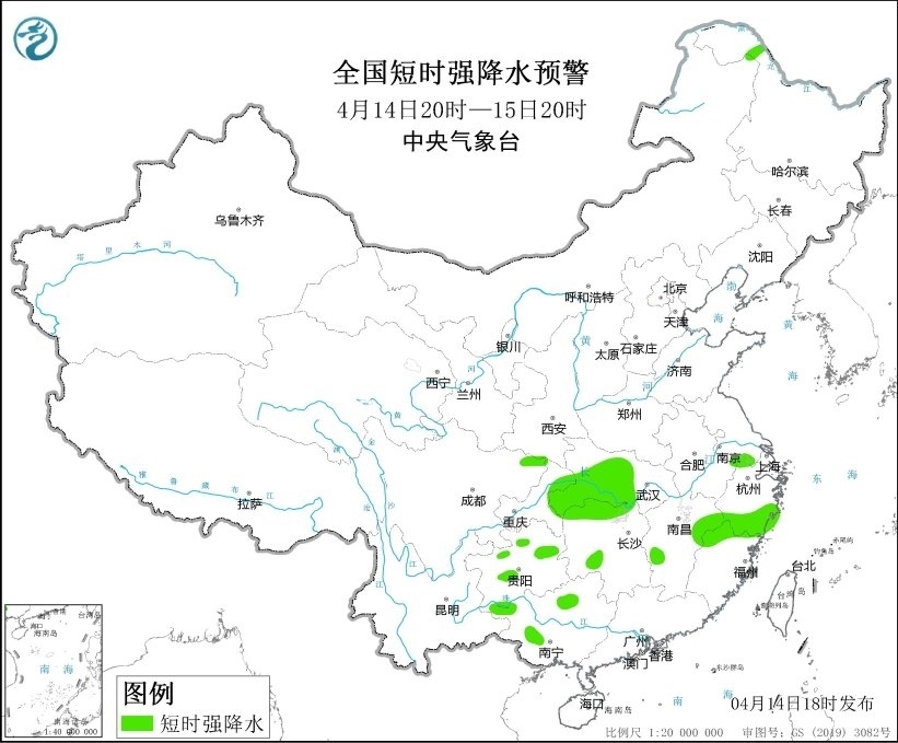 預(yù)計(jì)4月14日20時(shí)至15日20時(shí),遼寧西部、河北北部、山東東部、湖北南部和西部、湖南北部和西南部、江西東北部、浙江中南部、福建西北部、四川盆地東北部、重慶東北部、貴州中部和北部、廣西西北部等地的部分地區(qū)將有8-10級雷暴大風(fēng)或冰雹天氣;江蘇西南部、湖北中南部、湖南北部和西南部、江西西部和東北部、浙江南部、福建西北部、重慶東北部、貴州中北部、廣西西部和東北部等地的部分地區(qū)將有短時(shí)強(qiáng)降水天氣,最大小時(shí)雨量20-40毫米,局地可達(dá)50毫米以上。