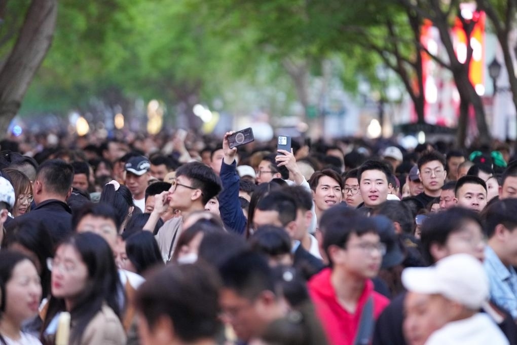5月1日,哈爾濱中央大街上人頭攢動(dòng)。新華社記者 王建威 攝