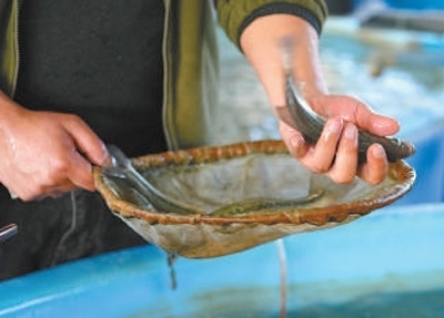 倪闖在查看魚卵培育情況。方 霞攝