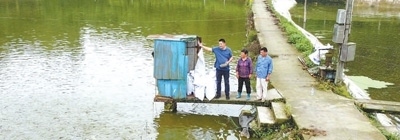倪闖(左一)在向村民傳授養(yǎng)魚技術(shù)。方 霞攝