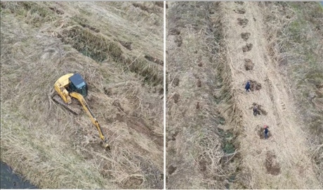 督察組暗查發(fā)現(xiàn),益陽市南洞庭湖省級(jí)自然保護(hù)區(qū)歐美黑楊已清退區(qū)域正在挖坑種樹。(督察組供圖)