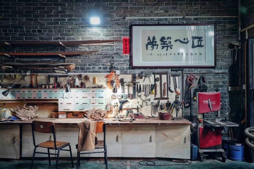張偉潮身上的傷也沒斷過?!疤焯旄洞蚪坏溃袝r(shí)候傷口剛縫了線,回到家一干活,刀口又開了”,手臂上、手背上遍布的傷疤,見證了每一個(gè)龍頭的誕生?!懊肯乱坏?,我都已經(jīng)想好了后面的第二步、第三步”,龍頭雕刻極為考究,從選料、切割,到粗雕、精雕,再到打磨、拋光、裱漆,十幾道繁瑣工序,全靠師傅的眼光和手藝。機(jī)械化、流水線,做不出龍頭嗎?在數(shù)不清的日夜里,光影斑駁間,張偉潮拿著父輩傳下的一刀一錘,一下一下,慢慢開鑿,給出自己的答案。