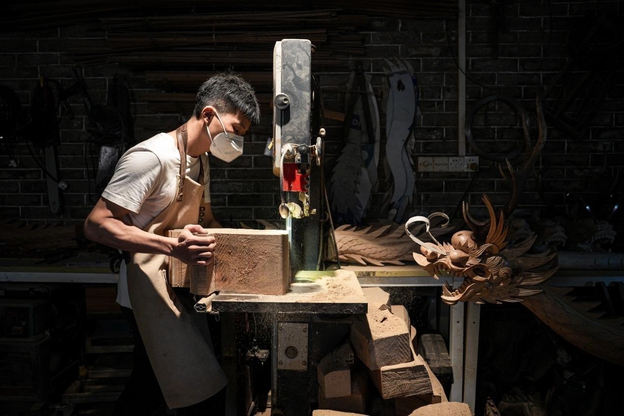 來找張偉潮的客戶,以做新龍頭居多。訂單排隊(duì),還都是卡點(diǎn)取貨,張偉潮練就了一手絕技:刀為筆,木為紙,筆起刀落,不帶半分猶豫?!澳镜袷亲鰷p法,錯(cuò)了就是錯(cuò)了,所以每一刀都要想好怎么做。”