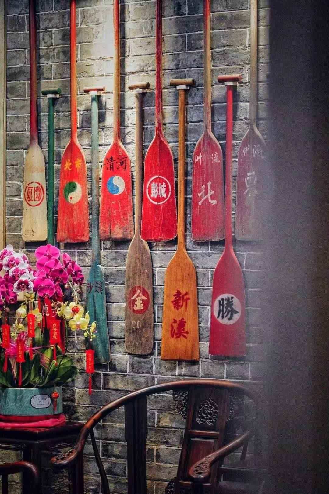 在張偉潮工作室的青磚墻上掛滿了劃龍舟所用的船槳。“來取龍頭的人大多會(huì)送一面錦旗,我說不要錦旗,可以把你們不用的槳送給我。”這些年張偉潮陸續(xù)收到了300多支船槳,在他看來,每一把槳都蘊(yùn)含著自己隊(duì)伍、村落的故事,每一把都是獨(dú)一無二的,他要把船槳當(dāng)作錦旗一樣高高地掛在墻上。
