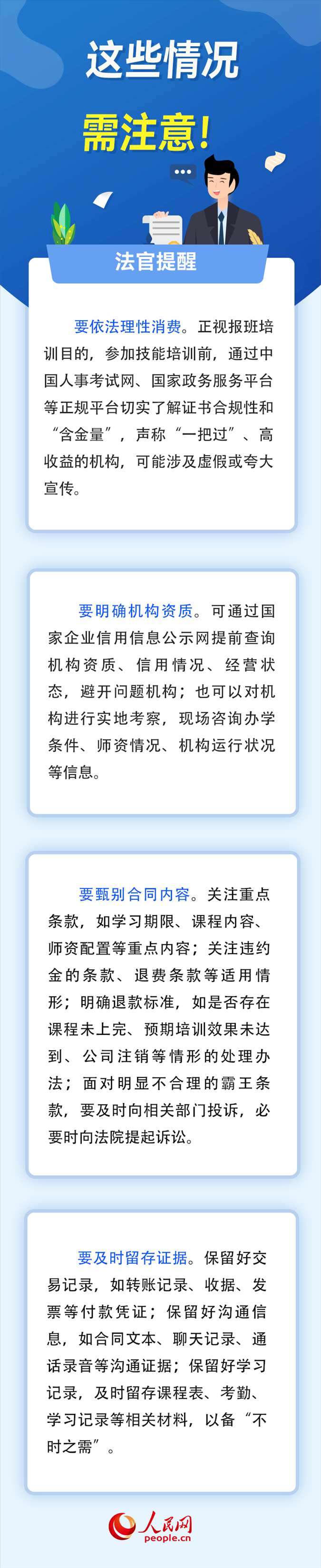 為掌握更多知識技能,“報培訓班”成為越來越多人的選擇。然而,部分培訓機構(gòu)虛假宣傳、半路關(guān)門、拒不退費等套路讓消費者防不勝防。如何識別培訓報班中的“陷阱”、維護自身權(quán)益?對此,人民網(wǎng)采訪了北京市通州區(qū)人民法院法官助理李志峰。(高清揚 實習生 李澤華)
