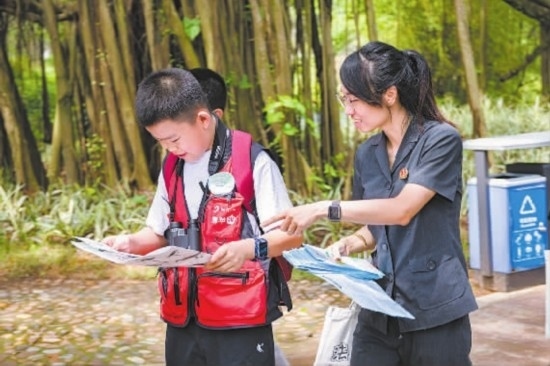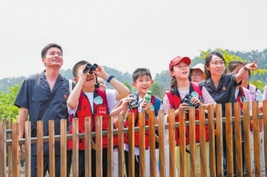 圖①:干警指引學(xué)生們觀察稀有鳥(niǎo)類(lèi)。