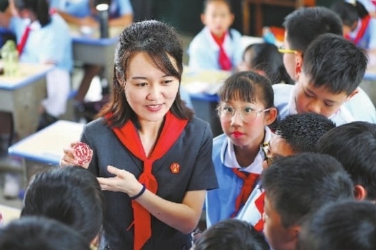九月二日上午八時,廣東省廣州市中級人民法院法官陳海儀來到廣州市第二中學,以『在法治陽光下健康成長』為主題,為全體師生開展『開學第一課』主題教育活動,鼓勵廣大學生以昂揚向上、不懈奮斗的拼搏精神,為中華民族偉大復興而努力學習;引導學生知法、懂法、守法,認真扣好人生第一??圩?。圖為陳海儀為全體學生授課。(張雅慧)