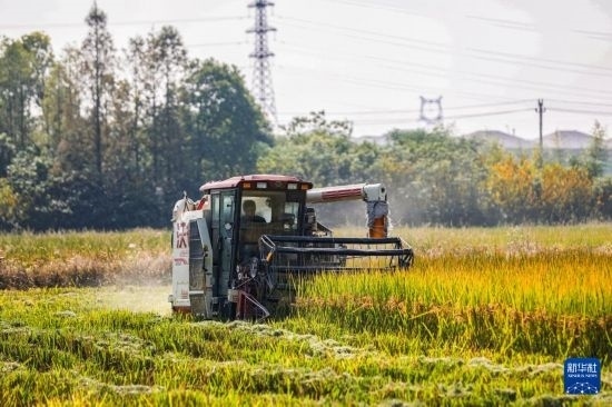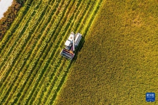 近日,浙江省湖州市吳興區(qū)東林鎮(zhèn)萬(wàn)畝稻田迎來(lái)豐收季,當(dāng)?shù)胤N糧戶搶抓農(nóng)時(shí),趁著天氣晴好搶收水稻,確保顆粒歸倉(cāng)。目前,東林鎮(zhèn)全鎮(zhèn)水稻種植面積20000余畝。