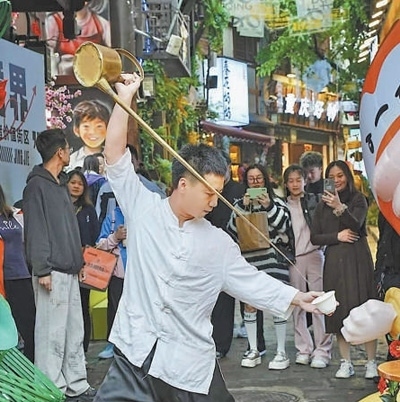 豐富文旅業(yè)態(tài)演員在進(jìn)行非遺表演。磁器口古鎮(zhèn)管委會供圖