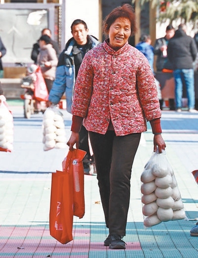 山東省青州市,工作人員將走訪慰問(wèn)困難群眾的愛心年貨裝車。