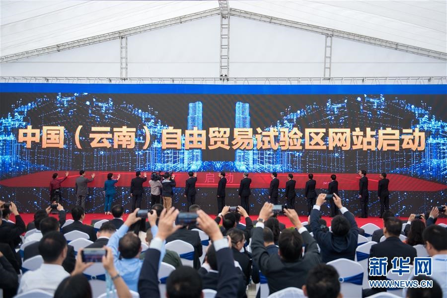 2019年8月30日,在中國(云南)自由貿(mào)易試驗(yàn)區(qū)掛牌儀式上,云南自貿(mào)區(qū)網(wǎng)站啟動(dòng)。新華社記者胡超攝