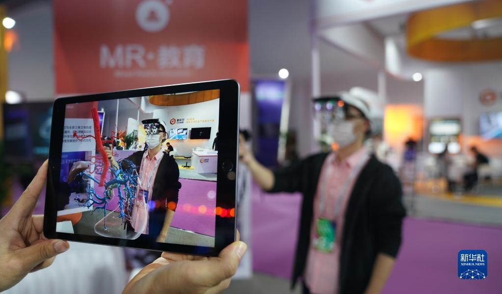 2020年10月19日,2020世界VR產(chǎn)業(yè)大會云峰會在江西省南昌市開幕,這是觀眾在大會VR/AR產(chǎn)品和應(yīng)用展覽會上體驗(yàn)“MR交互系統(tǒng)”在醫(yī)務(wù)教學(xué)上的應(yīng)用。新華社記者胡晨歡攝