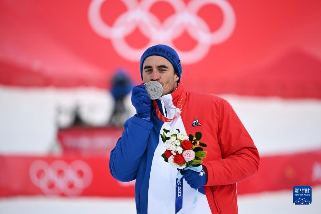 2月7日,高山滑雪男子滑降項(xiàng)目亞軍、法國(guó)選手約翰·克拉雷在獎(jiǎng)牌頒發(fā)儀式上。新華社記者 陳斌 攝