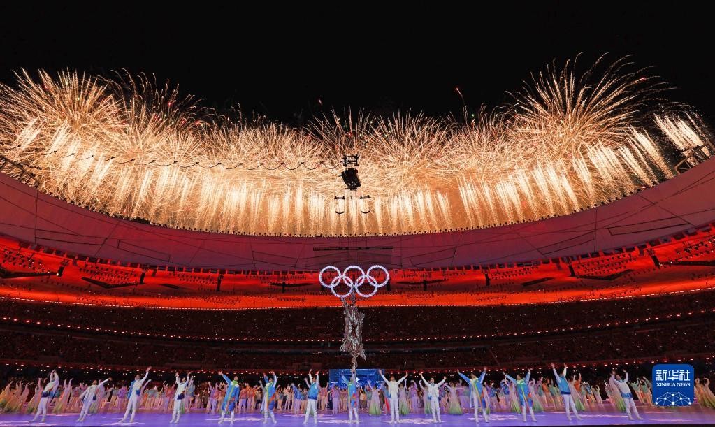 2022年2月20日晚,北京第二十四屆冬季奧林匹克運(yùn)動(dòng)會(huì)閉幕式在國(guó)家體育場(chǎng)舉行。這是焰火表演。新華社記者曹燦攝