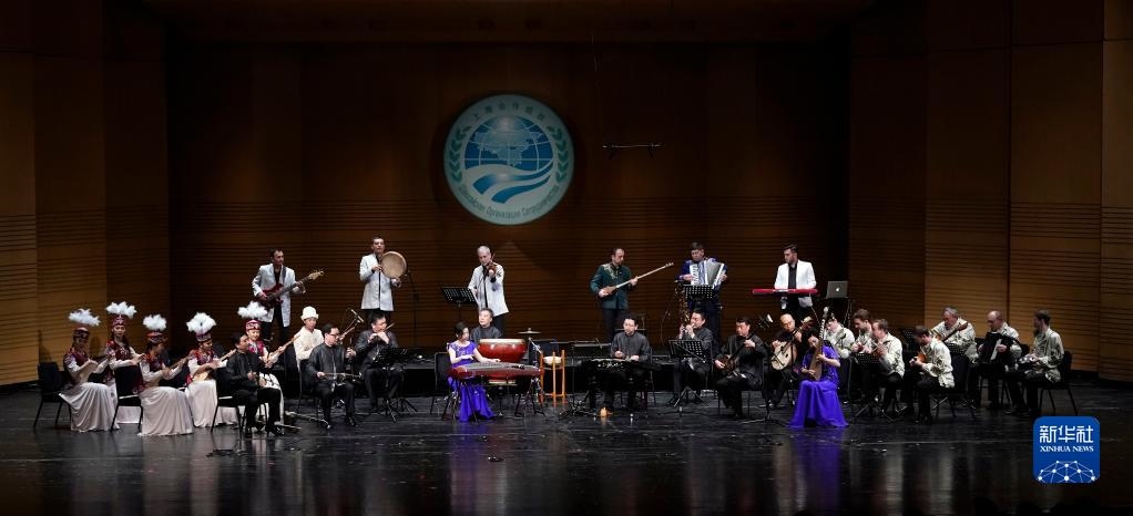 參演藝術(shù)家演奏中國民樂《喜洋洋》(2018年5月30日攝)。當日,上海合作組織成員國藝術(shù)節(jié)在北京保利劇院開幕。新華社記者 沈伯韓 攝