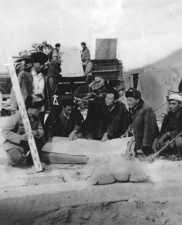 20世紀(jì)60年代,焦裕祿(前中)在蘭考沙區(qū)現(xiàn)場(chǎng)組織抗災(zāi)。(新華社發(fā))