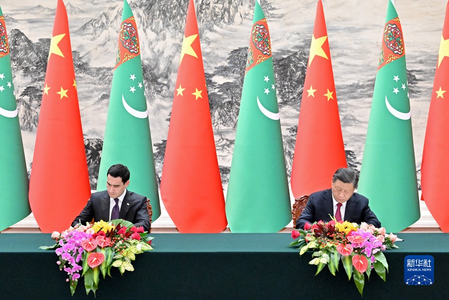 會(huì)談后,兩國元首簽署并發(fā)表《中華人民共和國和土庫曼斯坦聯(lián)合聲明》,共同見證簽署“一帶一路”、綠色發(fā)展、數(shù)字經(jīng)濟(jì)、衛(wèi)生、文化、體育、新聞媒體、天然氣等領(lǐng)域合作文件。
