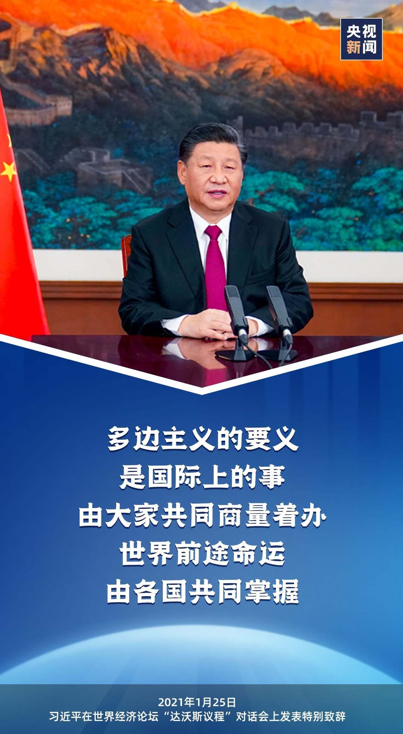 在2021年1月召開的世界經(jīng)濟(jì)論壇“達(dá)沃斯議程”對話會上,習(xí)近平主席發(fā)表特別致辭,再次強調(diào)踐行多邊主義,并指出“多邊主義的要義是國際上的事由大家共同商量著辦”。