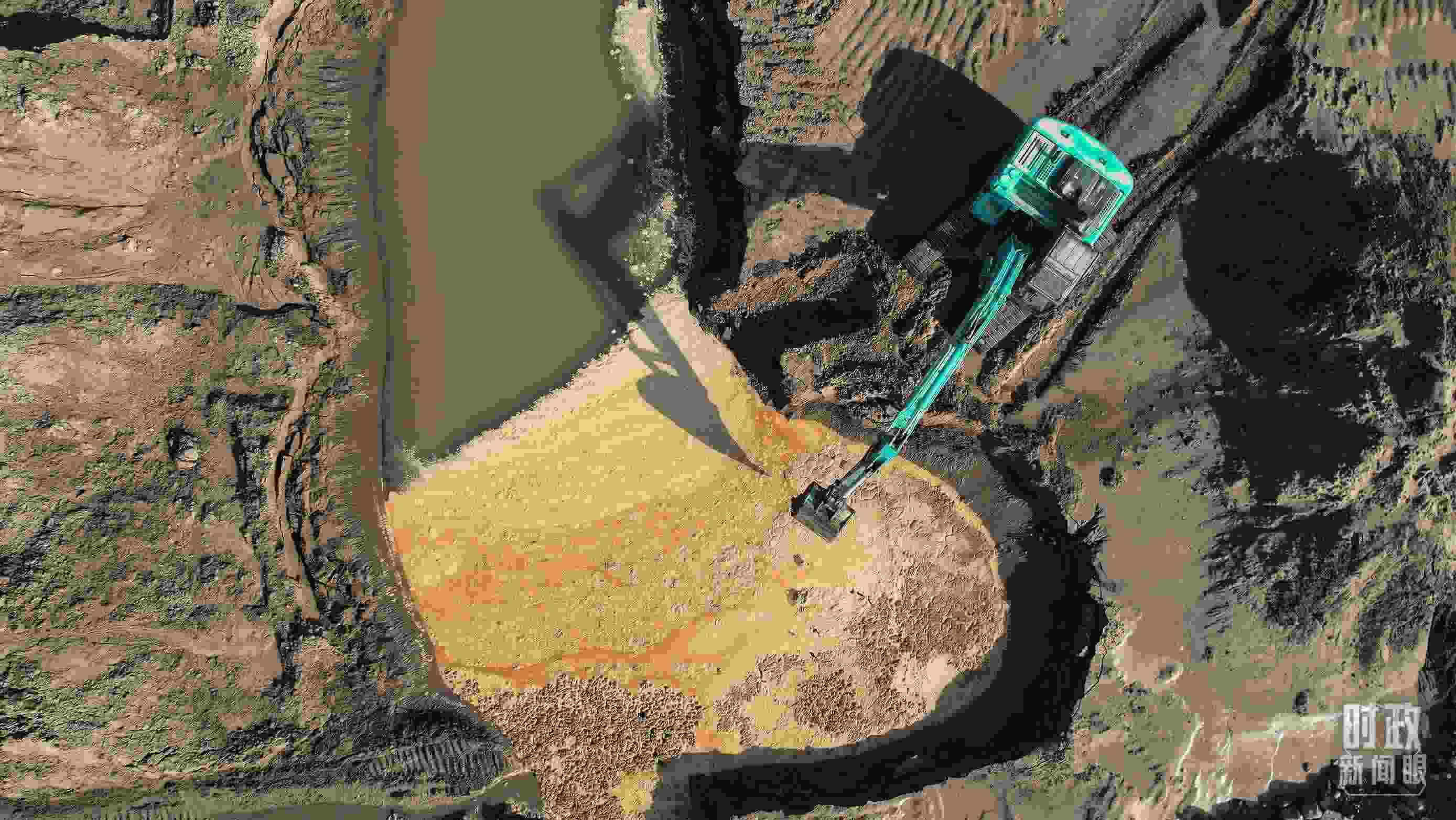 △ 白溝河治理工程(涿州段)施工現(xiàn)場(chǎng)航拍。(總臺(tái)國(guó)廣記者李晉拍攝)