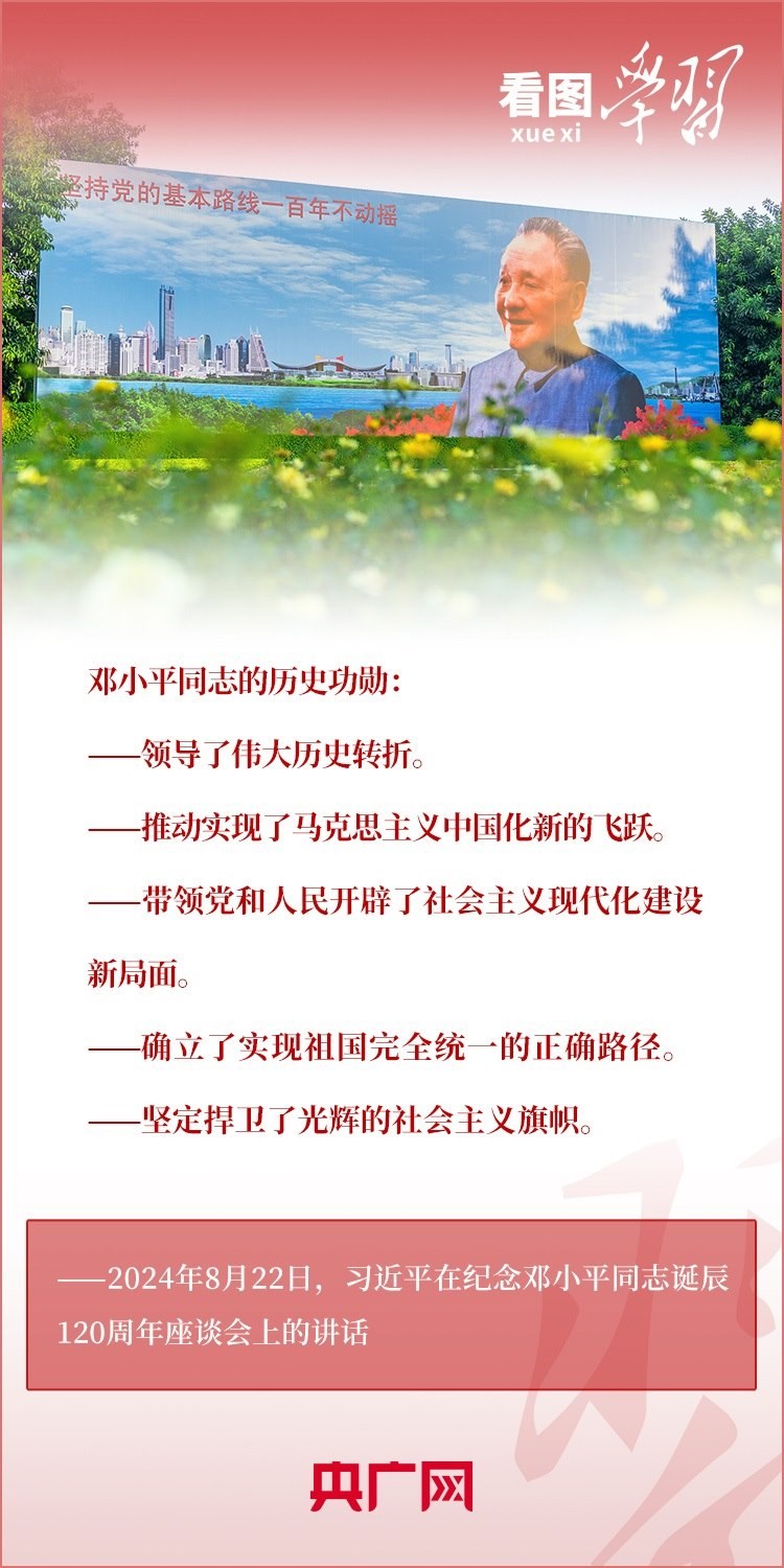 8月22日,習(xí)近平總書記在紀(jì)念鄧小平同志誕辰120周年座談會(huì)上發(fā)表重要講話指出,鄧小平同志的歷史功勛是全方位的、開創(chuàng)性的,對(duì)中國和世界的影響是深刻的、長(zhǎng)遠(yuǎn)的??倳洀?qiáng)調(diào),對(duì)鄧小平同志最好的紀(jì)念,就是把他開創(chuàng)的中國特色社會(huì)主義事業(yè)繼續(xù)推向前進(jìn)。我們要緊緊圍繞以中國式現(xiàn)代化全面推進(jìn)強(qiáng)國建設(shè)、民族復(fù)興偉業(yè)這個(gè)中心任務(wù),繼往開來,奮發(fā)進(jìn)取。一起來學(xué)習(xí)!