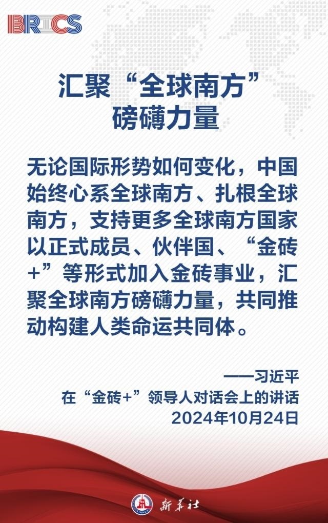 當(dāng)?shù)貢r間10月24日上午,國家主席習(xí)近平在喀山會展中心出席“金磚+”領(lǐng)導(dǎo)人對話會并發(fā)表題為《匯聚“全球南方”磅礴力量 共同推動構(gòu)建人類命運共同體》的重要講話,闡明中國主張——