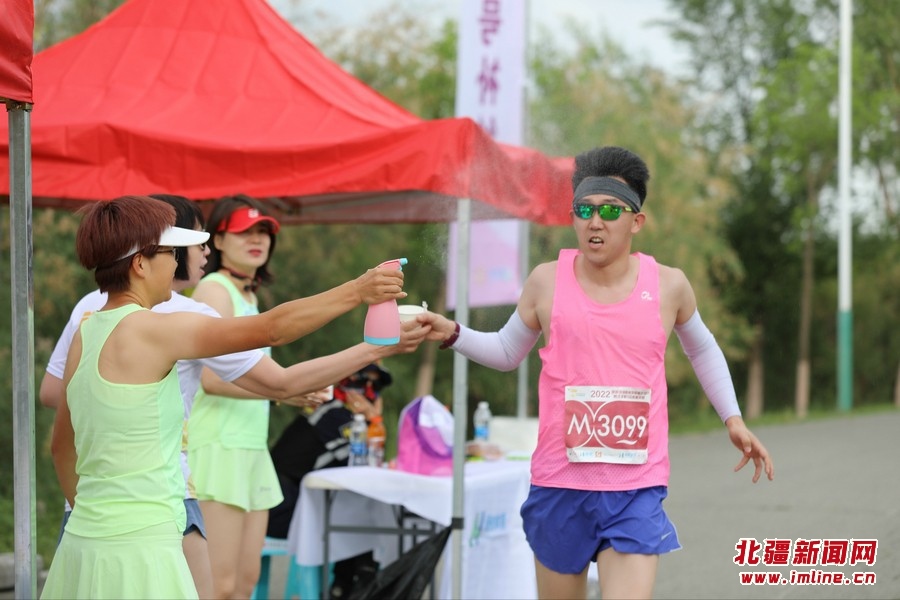 7月10日7:00,女子半程馬拉松公開賽,組委會以浪漫紫色為基調布置了充滿女性元素的賽場,女運動員揮灑汗水、綻放風采、超越自我,展現出北疆女兒自信、熱情、時尚的英姿。除了獎牌,組委會還用鮮艷的玫瑰迎接完賽的女選手,李科以1:22:08的成績獲得第一名,趙宇以1:29:18的成績獲得第二名,王士娟以1:33:47的成績獲得第三名。