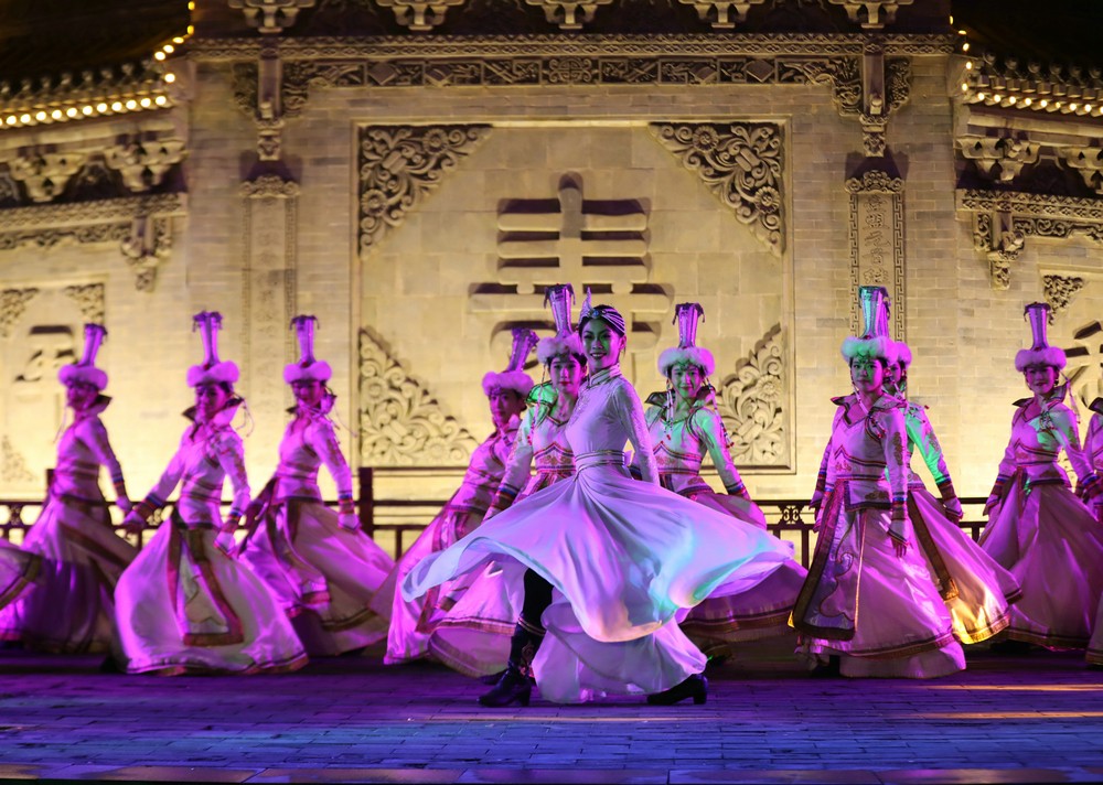 歡快的音樂聲響起,一群演員衣袂飄飄,在變幻的燈光下翩翩起舞,現(xiàn)場觀眾沉浸其中,隨著舞者的腳步,步入郡王府內(nèi),與演員們一起,回溯歷史,見證變遷。