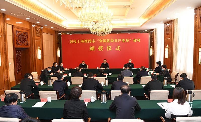 自治區(qū)黨委舉行追授于海俊同志“全國優(yōu)秀共產(chǎn)黨員”稱號頒授儀式