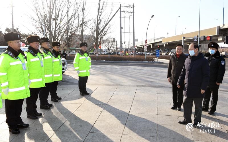 1月31日,自治區(qū)黨委書記、人大常委會(huì)主任石泰峰,走訪呼和浩特市公安局交警支隊(duì)賽罕大隊(duì)九中隊(duì)崗?fù)?,看望慰?wèn)一線執(zhí)勤交警。內(nèi)蒙古日?qǐng)?bào)社融媒體記者袁永紅攝