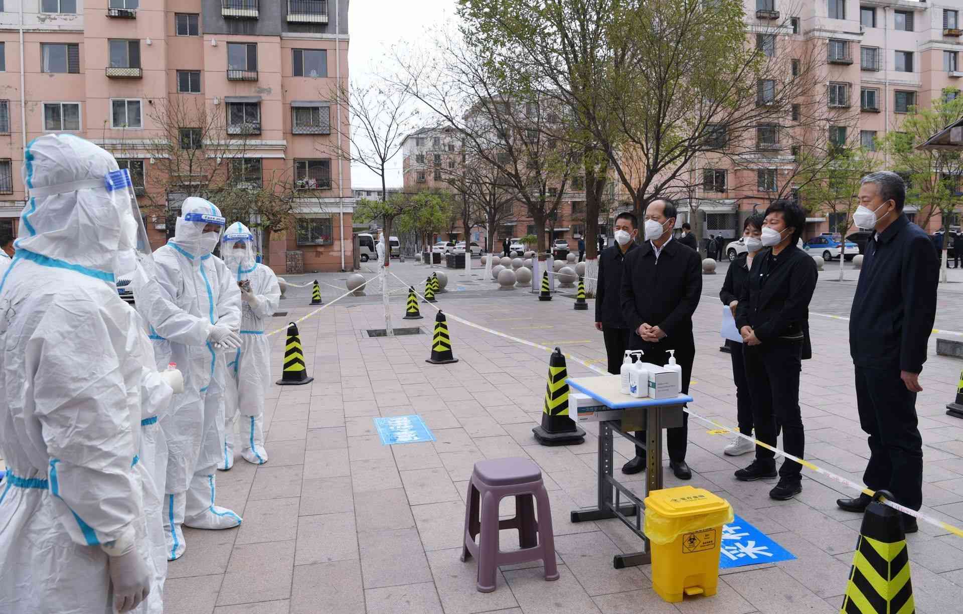 龍?jiān)沸^(qū)B區(qū)已發(fā)現(xiàn)確診病例,石泰峰趕赴該小區(qū)實(shí)地檢查。一到小區(qū)門(mén)口,他就向工作人員詳細(xì)了解人員隔離、小區(qū)管控、生活保障等情況。他強(qiáng)調(diào),管控要管?chē)?yán)管住,但暖心的服務(wù)不能少。各級(jí)干部要將心比心、換位思考,把各方面的情況都考慮得周密細(xì)致一些,加強(qiáng)物資調(diào)配供應(yīng),做好群眾思想疏導(dǎo)工作,確保群眾生活需求及時(shí)保障到位。特別是要高度關(guān)注特殊群體,把底數(shù)摸清,把工作做細(xì),切實(shí)保障好他們的就醫(yī)用藥需求。石泰峰還走進(jìn)德景苑小區(qū),與核酸采樣點(diǎn)的同志深入交談,詳細(xì)了解采樣進(jìn)度、采樣能力及如何保證應(yīng)檢盡檢等情況。石泰峰強(qiáng)調(diào),要有序組織好每個(gè)社區(qū)的核酸檢測(cè),及時(shí)準(zhǔn)確掌握清楚每個(gè)人的情況,務(wù)必做到應(yīng)檢盡檢、不落一人。