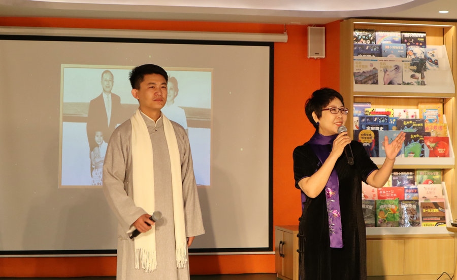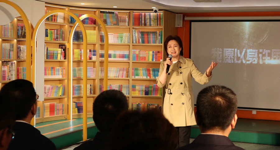 活動(dòng)現(xiàn)場,大型交響詩畫《我愿以身許國》劇組的各位朗誦家們,深情演繹了大型交響詩畫《我愿以身許國》片段,并代表內(nèi)蒙古出版集團(tuán)為呼和浩特市賽罕區(qū)四千米社區(qū)捐贈(zèng)圖書。