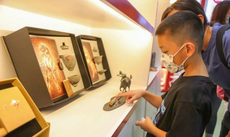 7月19日上午10:00,第33屆香港書展在香港會議展覽中心開幕。內(nèi)蒙古主題省(區(qū))展區(qū)正式亮相,展出近年來內(nèi)蒙古自治區(qū)出版的50種精品主題出版物、200種文藝類出版物、20種數(shù)字融合出版物、89種優(yōu)秀音像制品等,同時還展出了80種優(yōu)秀少兒出版物、《內(nèi)蒙古印象》攝影作品、“內(nèi)蒙古禮物”文創(chuàng)產(chǎn)品等,國家一級文物紅山文化玉龍高仿制品也亮相展區(qū),吸引眾多讀者駐足觀賞。