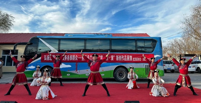 弘揚北疆文化 服務各族群眾——全區(qū)烏蘭牧騎“學·創(chuàng)·演”新創(chuàng)作品展演呼和浩特賽罕區(qū)敕勒川路街道東古樓村活動現(xiàn)場