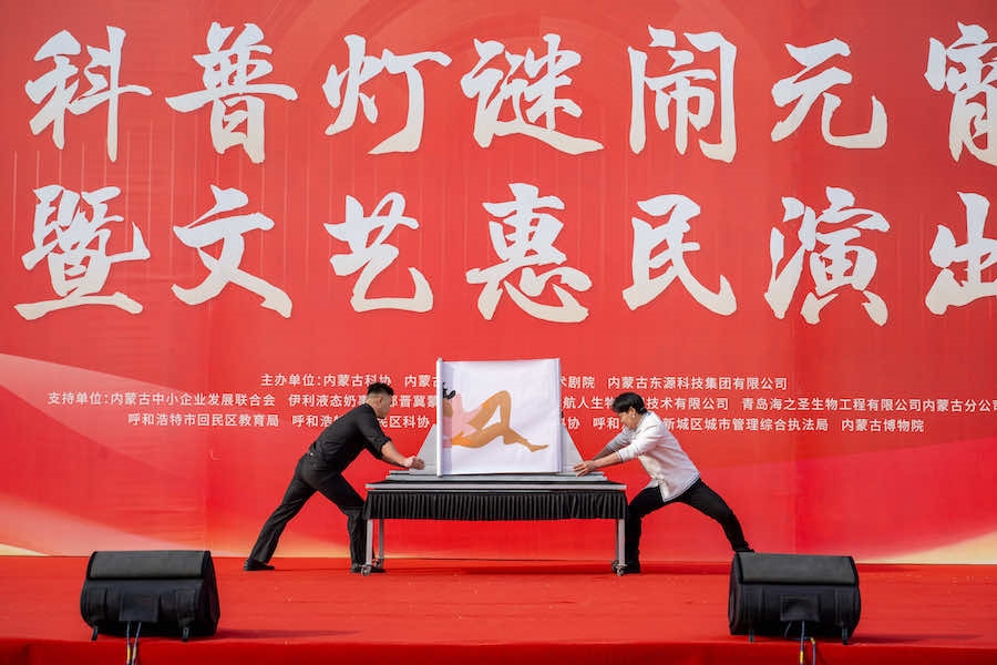當日(正月十四),內蒙古科協(xié)等單位在寶鼎廣場舉辦了科普燈謎鬧元宵暨文藝惠民演出活動。
