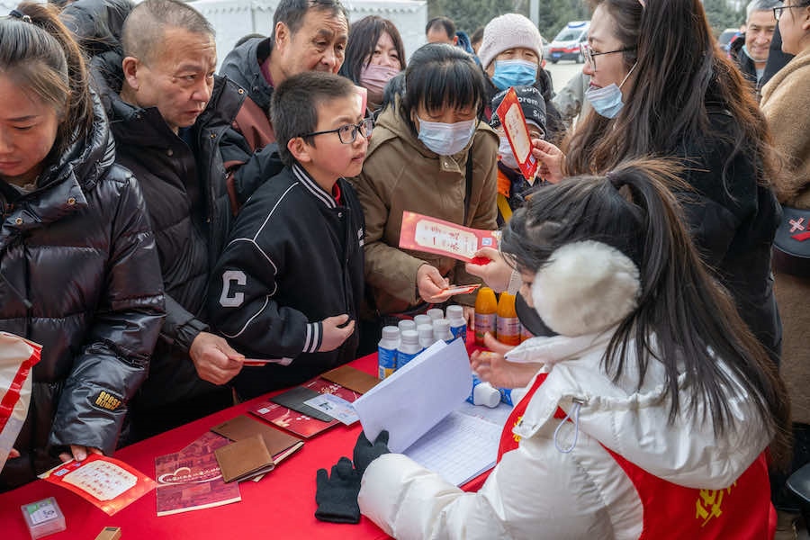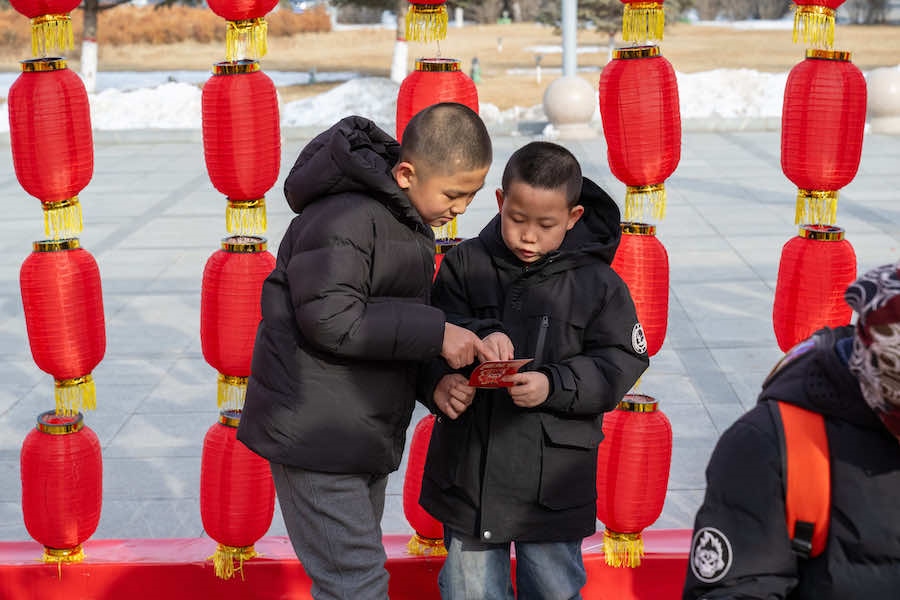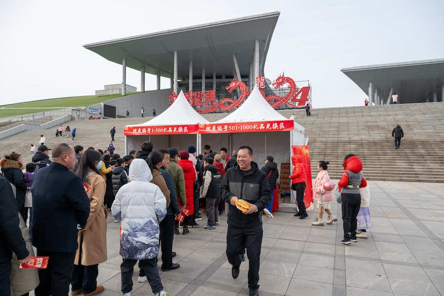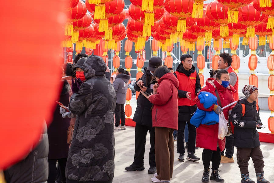 2月23日下午,在內蒙古呼和浩特寶鼎廣場,市民游客拿著燈謎卡來到禮品兌換區(qū),興奮不已地排隊等待著。