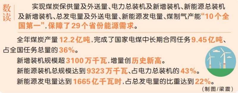 這一年,內(nèi)蒙古堅(jiān)決服從服務(wù)國家大局,全力抓好能源穩(wěn)產(chǎn)保供。全年煤炭產(chǎn)量12.2億噸,完成了國家電煤中長期合同任務(wù)9.45億噸、占全國任務(wù)總量的36%,外送煤炭7.2億噸、外送電量3065億千瓦時(shí)。