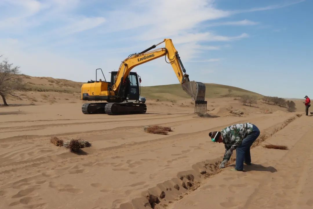 改裝后的挖掘機(jī)在治沙工作中展現(xiàn)出了強(qiáng)大的優(yōu)勢(shì)。據(jù)了解,以往人工種植時(shí),兩個(gè)人一天才能完成一畝地的工作量,五個(gè)人最多也只能處理兩畝半到三畝地。而如今,改裝后的挖掘機(jī)一天的工作量相當(dāng)于五個(gè)人種植十畝地,不僅大大提升了工作效率,還節(jié)約了大量的人力和物力。原本只能用于挖掘作業(yè)的鉤機(jī),經(jīng)過(guò)簡(jiǎn)單改裝后,搖身一變成為防塵固沙的“利器”,為沙漠治理工作注入了新的活力。目前,合作社已投入兩臺(tái)改裝挖掘機(jī)進(jìn)行作業(yè),并計(jì)劃在未來(lái)將其數(shù)量增加至五臺(tái),以確保按時(shí)完成2025年規(guī)劃中8.4萬(wàn)畝的治理任務(wù)?! ?/p>
