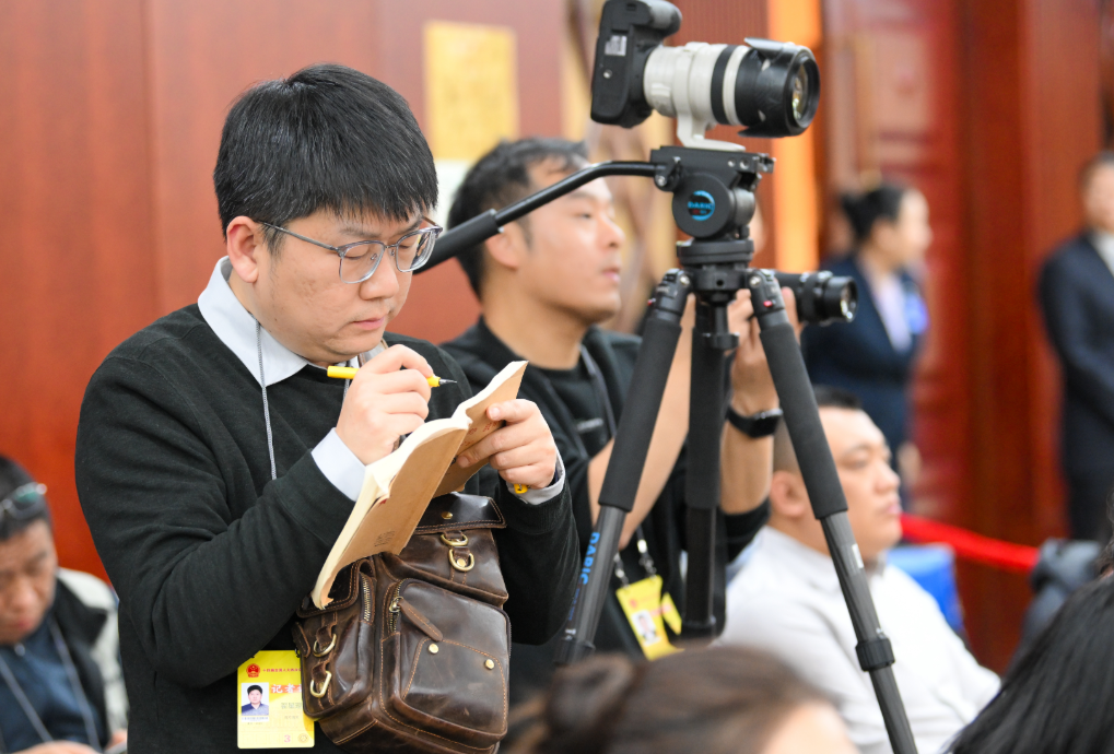記者拍攝代表回答提問。草原云記者 韓卿立 攝