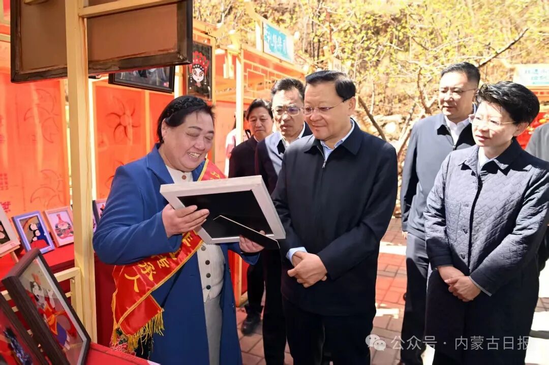 4月21日,自治區(qū)黨委書記、人大常委會主任王偉中在莫尼山非遺小鎮(zhèn)調研文旅產業(yè)發(fā)展等情況。草原云·內蒙古新聞網(wǎng)記者 馬建兵 攝