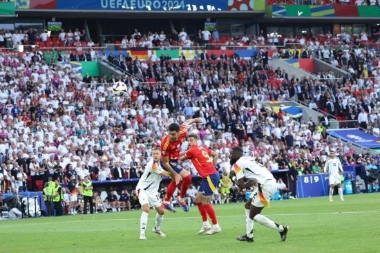 下半場開場德國隊(duì)就換上維爾茨和安德里希。第51分鐘,西班牙隊(duì)亞馬爾右路帶球進(jìn)入禁區(qū)后橫傳中路,拍馬趕到的奧爾莫推射破門,為本隊(duì)先拔頭籌。此后德國隊(duì)換上中鋒菲爾克魯格,與哈弗茨形成雙前鋒,逐漸占據(jù)場面主動(dòng)。第76分鐘,菲爾克魯格禁區(qū)內(nèi)搶點(diǎn)射門擊中立柱。