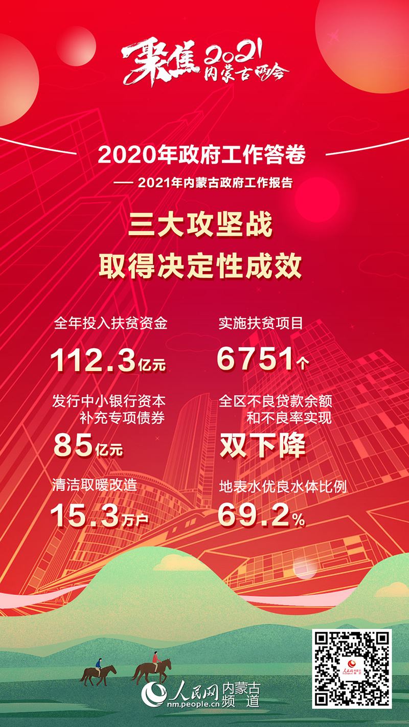 1月26日上午,內(nèi)蒙古自治區(qū)十三屆人大四次會議在內(nèi)蒙古人民會堂開幕。自治區(qū)主席布小林作政府工作報告。2020年是極不平凡的一年,內(nèi)蒙古緊扣全面建成小康社會目標任務(wù),堅持穩(wěn)中求進工作總基調(diào),堅持以人民為中心,科學統(tǒng)籌疫情防控和經(jīng)濟社會發(fā)展,扎實做好“六穩(wěn)”工作,全面落實“六保”任務(wù),全區(qū)經(jīng)濟持續(xù)回穩(wěn),社會大局和諧穩(wěn)定,“十三五”規(guī)劃順利收官。2020年政府工作有哪些亮點?看內(nèi)蒙古書寫這份精彩答卷!