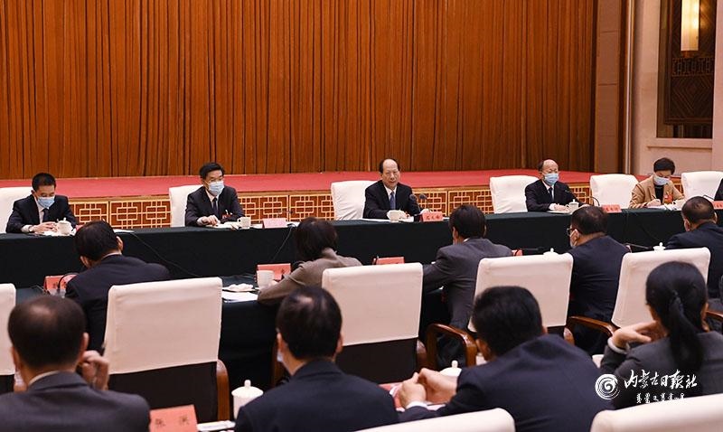 自治區(qū)政協(xié)主席李秀領(lǐng),自治區(qū)領(lǐng)導(dǎo)黃志強、胡達古拉、于立新、馬學(xué)軍、張華、其其格參加聯(lián)組討論。