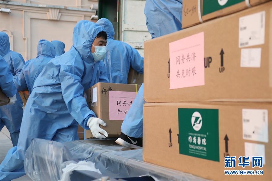 當(dāng)日,國(guó)家衛(wèi)生健康委從華中科技大學(xué)同濟(jì)醫(yī)學(xué)院附屬協(xié)和醫(yī)院、附屬同濟(jì)醫(yī)院調(diào)撥的醫(yī)療物資運(yùn)抵滿(mǎn)洲里市。 新華社記者 鄒儉樸 攝